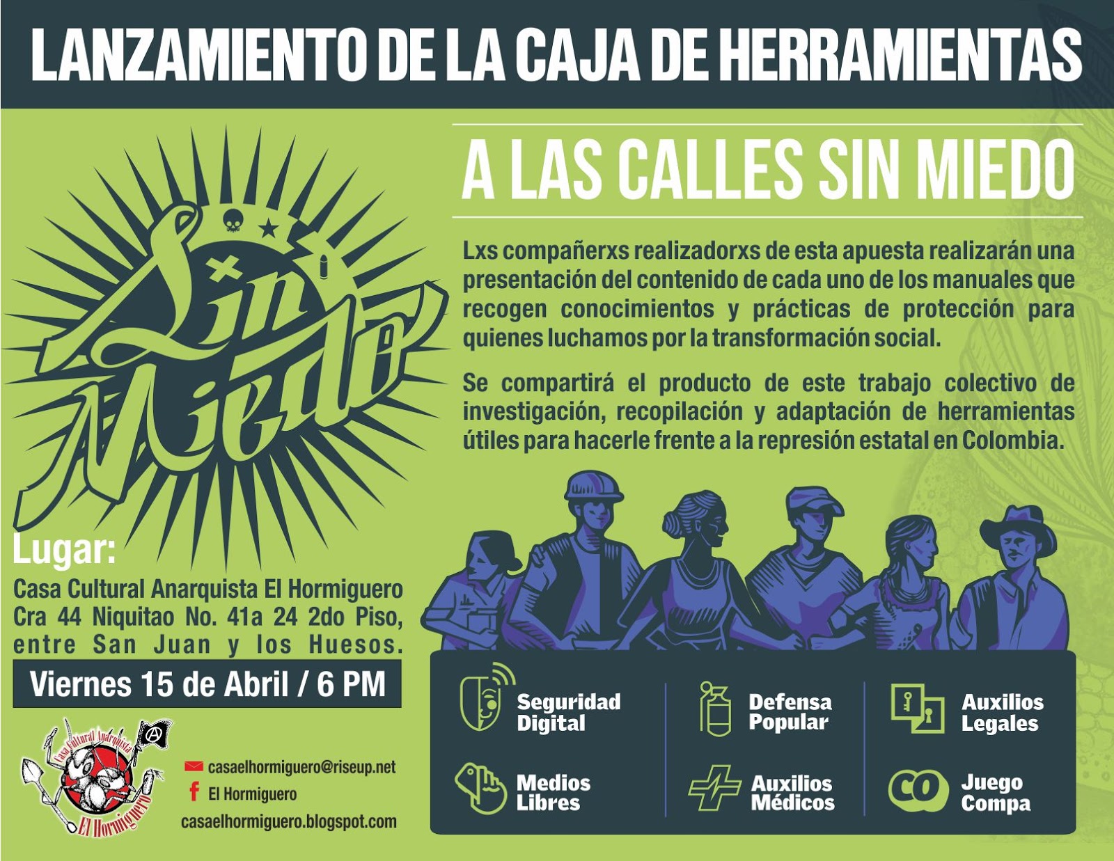 Se compartirá el producto de este trabajo colectivo de investigación, recopilación y adaptación de herramientas útiles para hacerle frente a la represión estatal en Colombia.